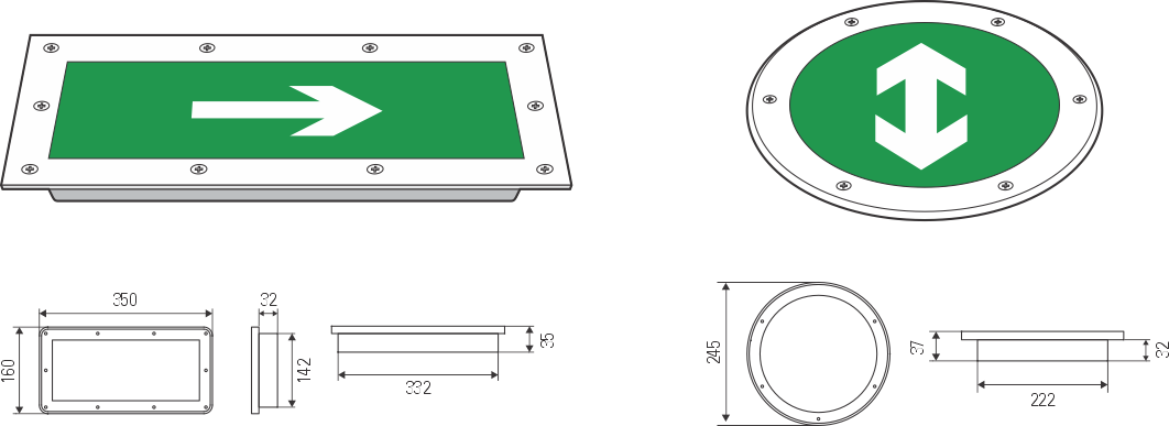 Đèn sự cố kiểu dẫn lối - Loại âm sàn