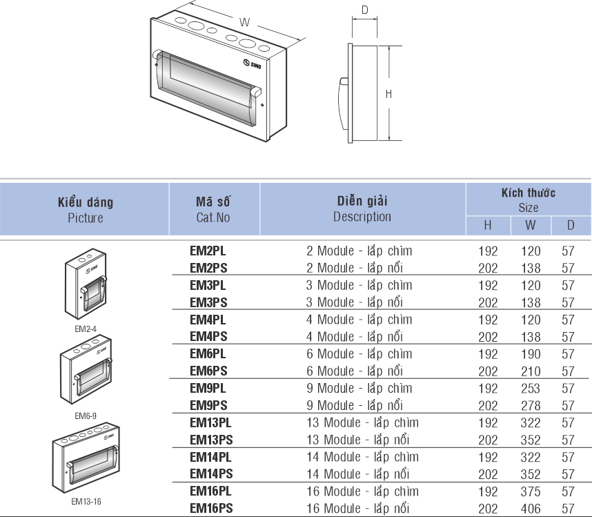 • Khả năng chứa: 2 - 16 Module (18mm/1md)
