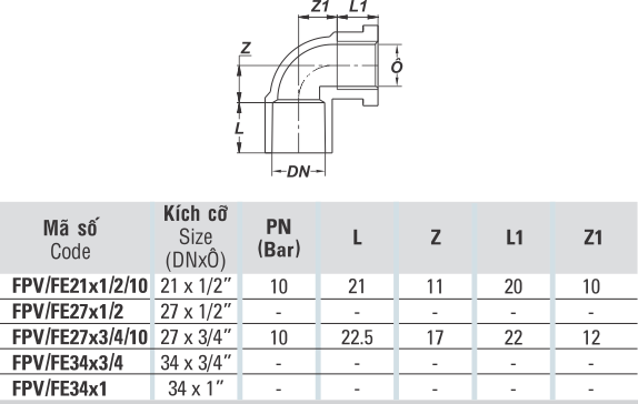 Nối góc 90 độ ren trong
