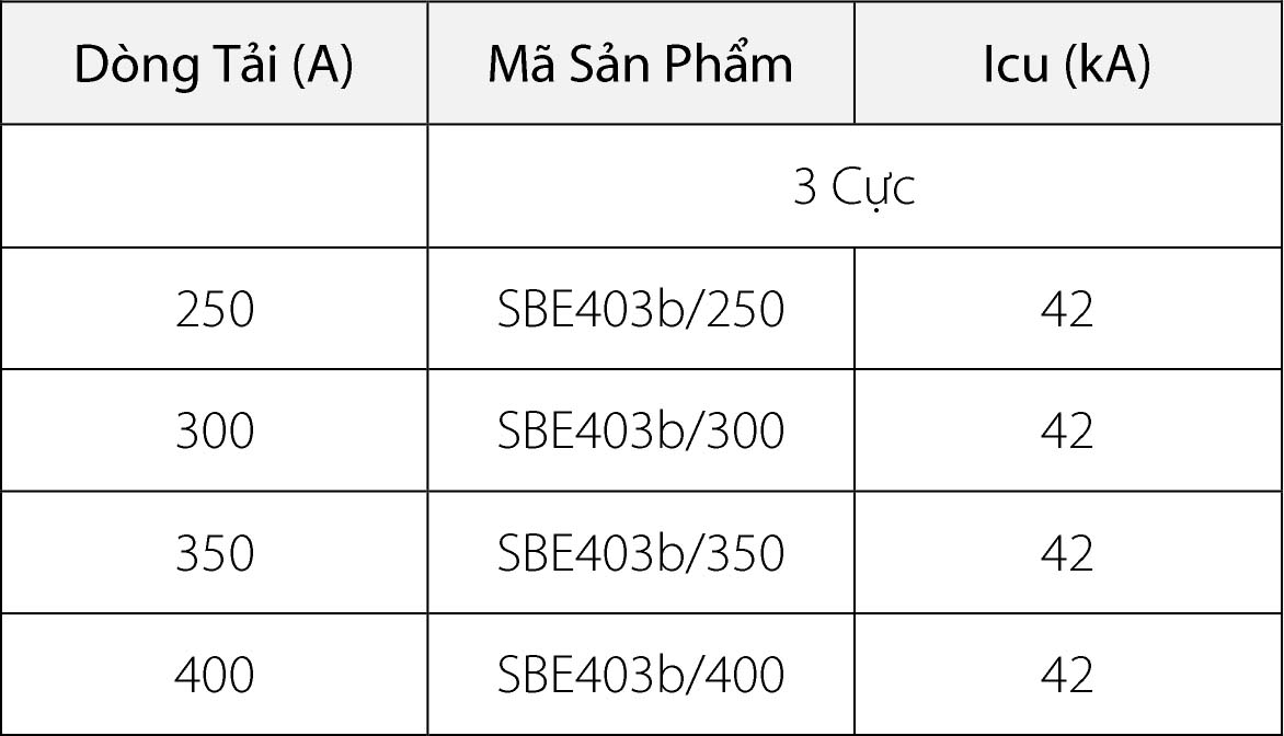 • Dòng định mức: 250-400A