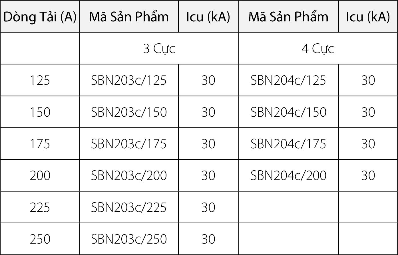 • Dòng định mức: 125-250A
